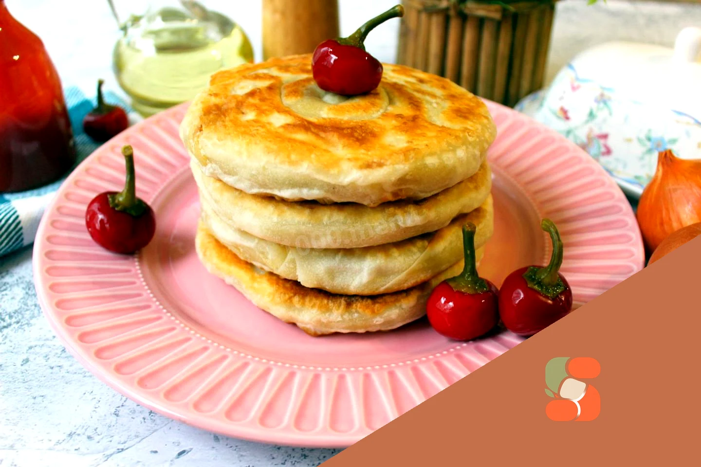 : Викладіть перший коржик на добре розігріту сковороду і обсмажте його на невеликому вогні з двох сторін на олії до золотистого кольору. Щоб прибрати зайву олію, промокніть коржики паперовими серветками. На сильному вогні коржі смажити не можна, тому що тісто повністю не пропечеться. Поки смажиться один коржик, розкотіть наступну кульку тісто і проробіть ту ж процедуру, що і з першим коржом. І так зробите ще з двома заготовками.