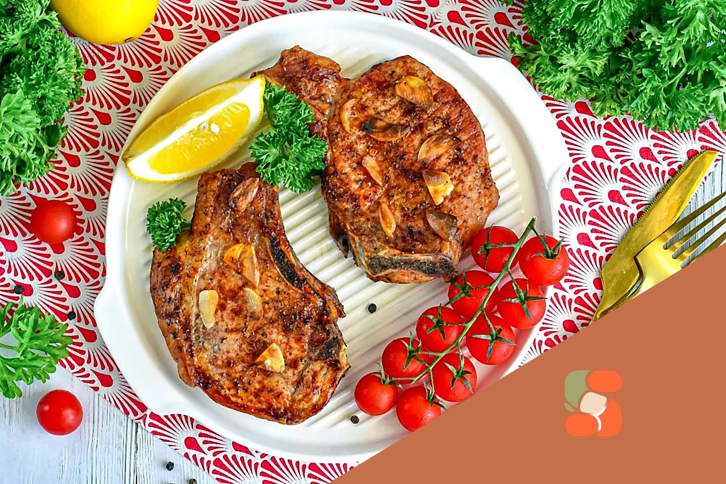 : Як зробити соковиту свинячу корейку в аерогрилі? Спочатку підготуйте необхідні інгредієнти за списком. Я вибрала для запікання свинячі корейки на кісточці. Корейку можете брати нарізану або купити цілий шматок і нарізати його скибками між кісточок самостійно. Заморожене м'ясо заздалегідь розморозьте на нижній полиці холодильника. Про тонкощі правильної розморозки читайте у статті за посиланням наприкінці рецепту.