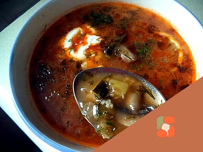 # Солянка з консервованими грибами Густа та ситна солянка з ароматними консервованими грибами — справжній королем холодної пори року. Гармонійне поєднання копчених ковбас, сметани та пікантного смаку…