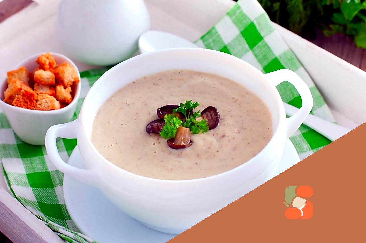 : Готовий суп пюруйте за допомогою занурювального блендера і можете подавати, додавши за бажанням обсмажені гриби, свіжу зелень або сухарики з білого хліба.