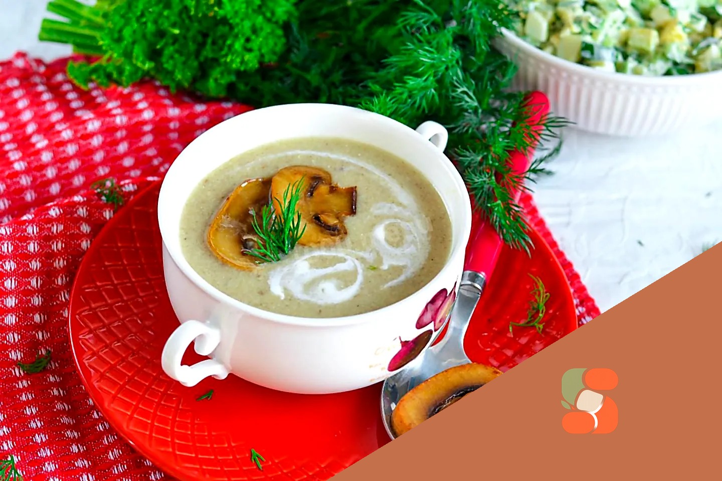 Приготуйте ніжний грибний суп-пюре зі сметаною - ароматну страву з шампіньйонів та картоплі. Цей витончений суп з м'яким мускатним горіхом ідеально підходить для сімейного обіду та святкового столу.