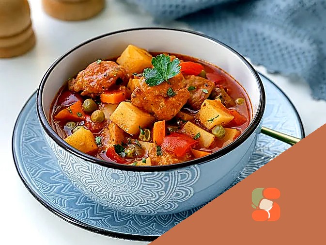 Суп-рагу з куркою, солодким перцем та зеленим горошком
