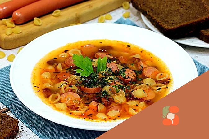 Суп з макаронами, квасолею та сосисками розкладіть по тарілках.