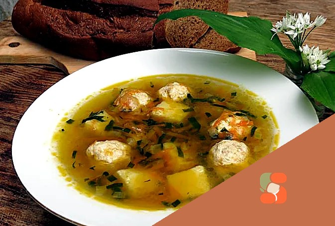 # Суп з фрикадельками та ведмежою часником Божественно ароматний суп з ніжними м'ясними фрикадельками та весняною ведмежею часником — справжнє святкування смаку на тарілці. Прозора золотиста бульйон …