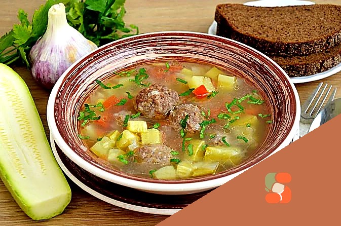 # Суп з м'ясними фрикадельками, кабачками і помідорами Ароматний і насичений суп, що виграє своєю простотою і смачністю! М'ясні фрикадельки розварюються в гарячому бульйоні, додаючи йому багатого, м'…