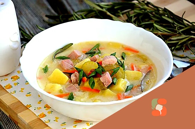 Суп з шинкою, селери та молочною заправкою