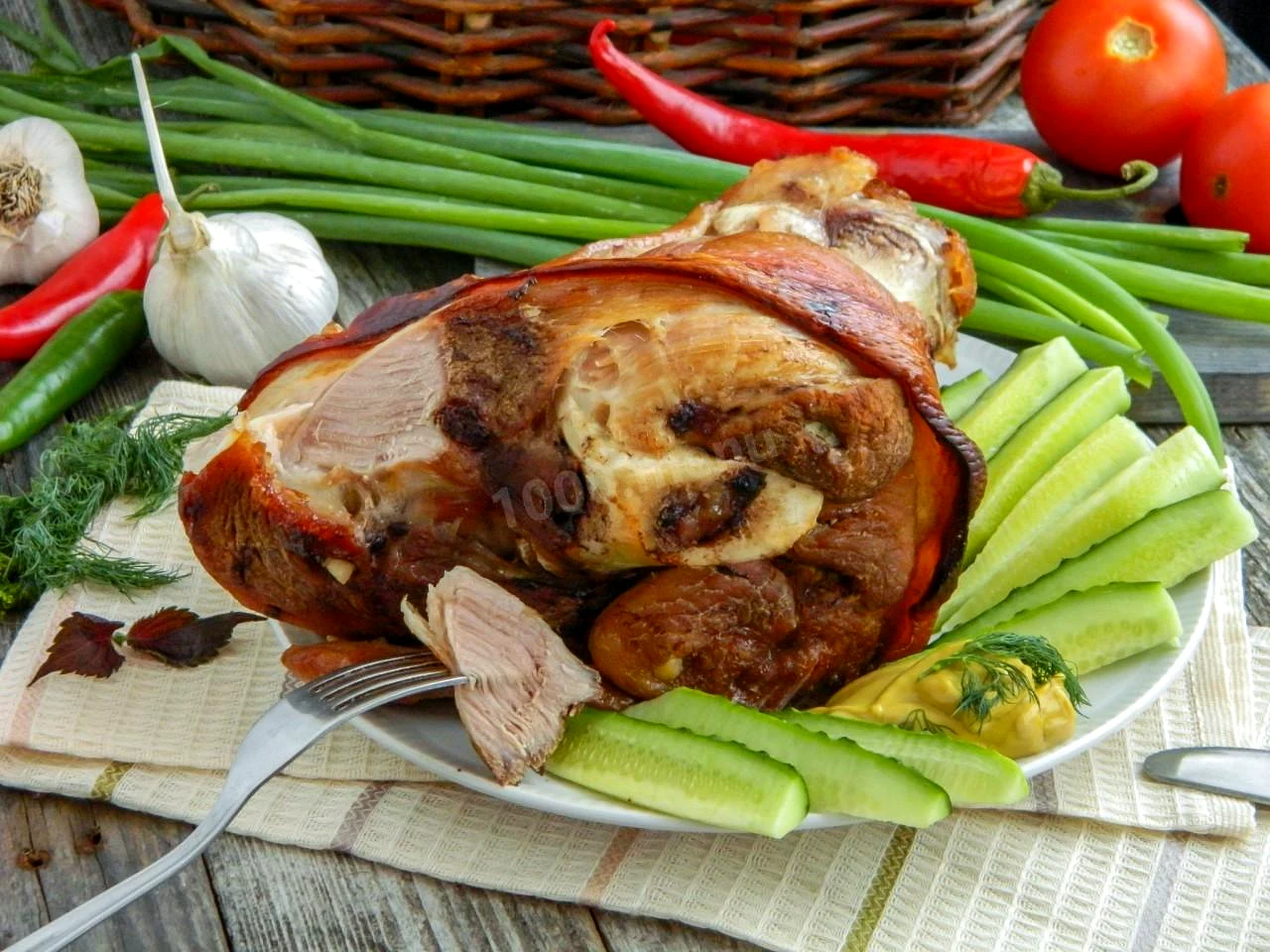 Свиняча рулька в пиві, запечена в духовці.