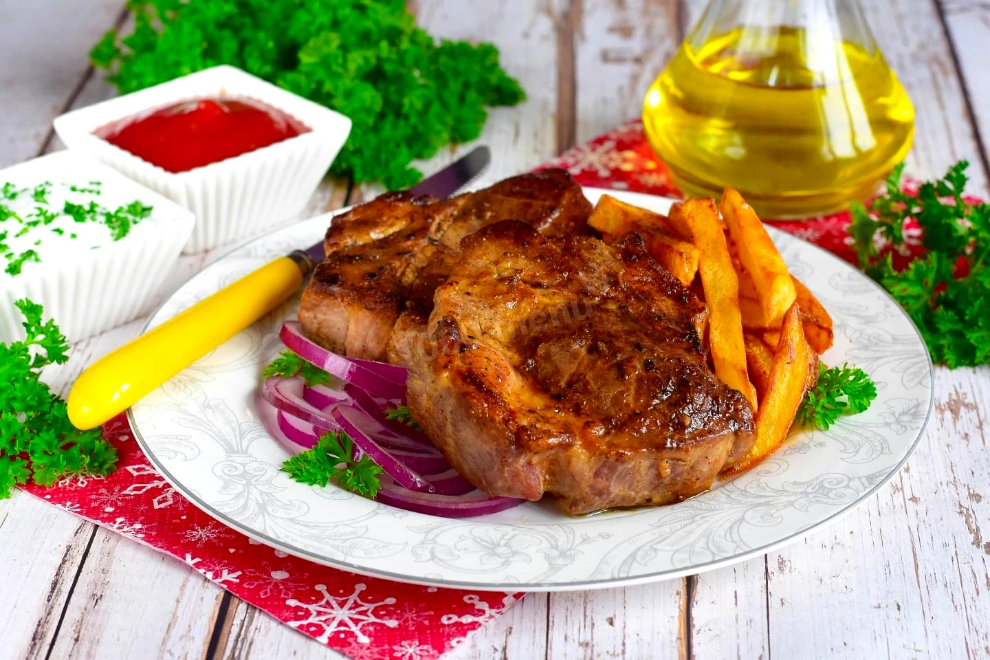 : Готовую жареную свиную шею подайте к столу с любым гарниром. Приятного аппетита!