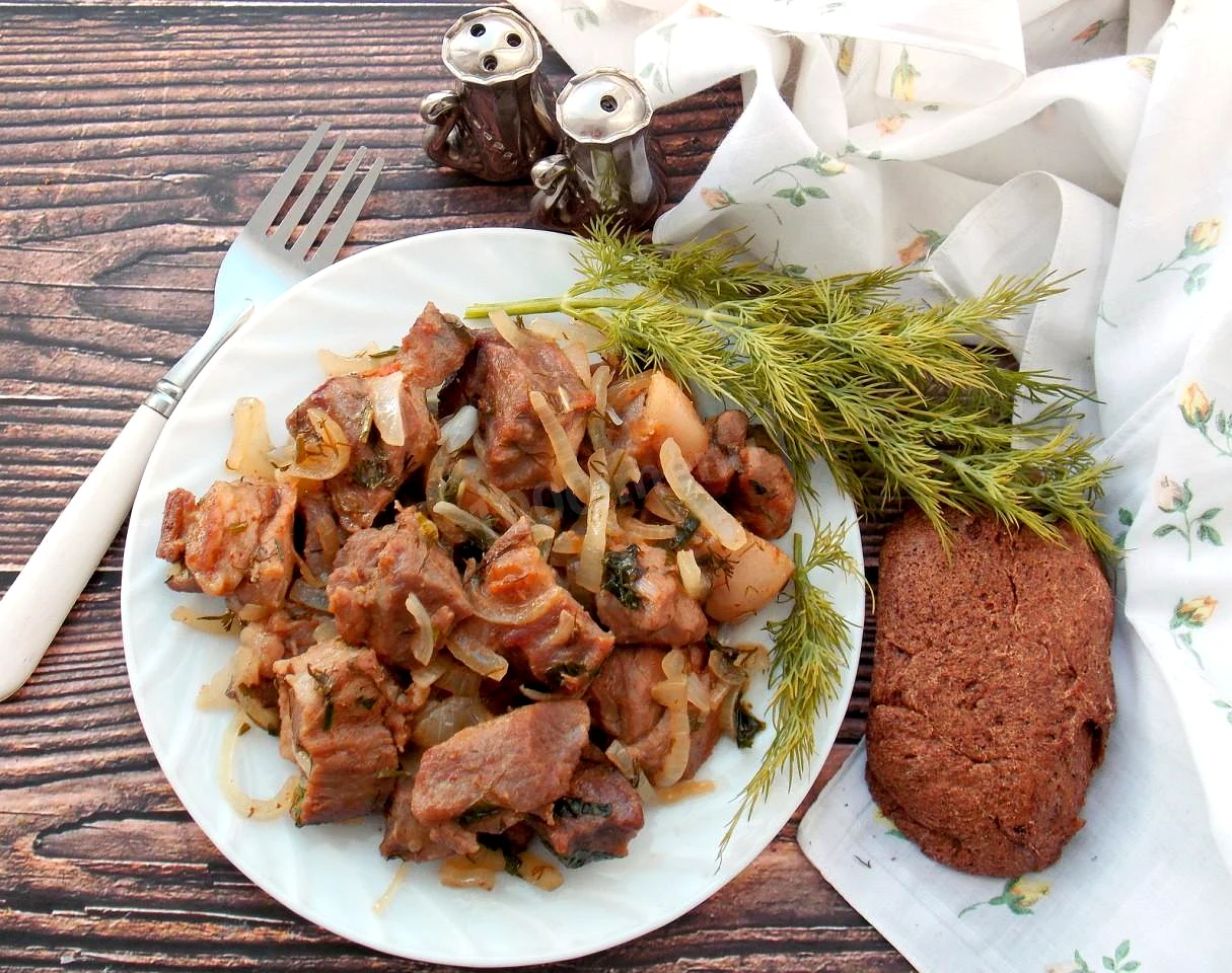 Свинина жареная кусочками на сковороде