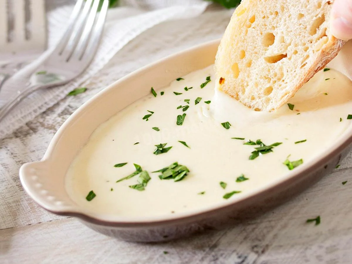 Інгредієнти−12 порцій+Продукти (12 порцій)Часник5 зубч.Вершкове масло|мастило|120 грПшеничне борошно20 грВершки жирні400 млПармезан150 грПерець чорний мелений3 грСіль3 грЗелень20 гр