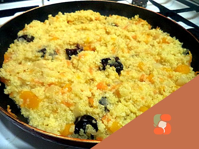 Кабачок нарізаємо невеликими кубиками. Додаємо до сковороди.
