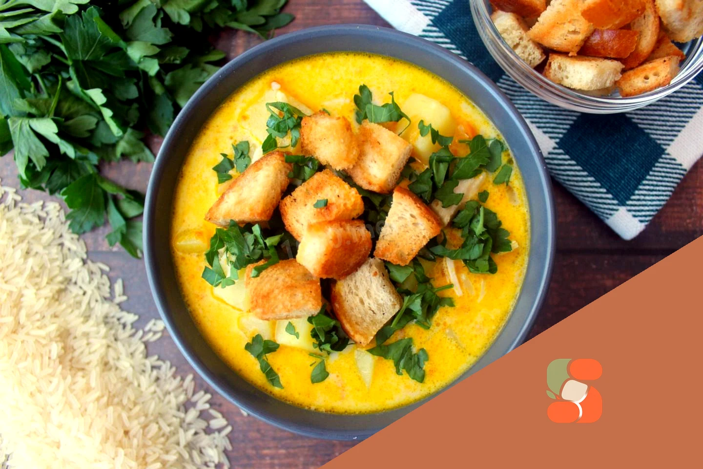 : Як зварити сирний суп з куркою та картоплею сиром та рисом. Підготуйте усі інгредієнти. Куряче філе можна замінити на курячі гомілки або стегенця, але тоді краще взяти їх більше, тому що м'яса в них менше, ніж у чистому філе. Рис краще обрати довгозерний. Картоплю краще взяти з маркуванням «для варіння», так вона дуже швидко звариться в бульйоні. Сир краще брати у ванні, а не в брикетах. З ним простіше працювати і він краще розчиняється в киплячому супі.