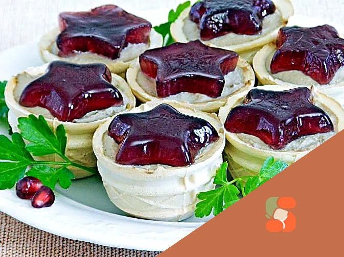 Тарталетки з печінковим паштетом та гранатовим желе готові. Приємного апетиту.