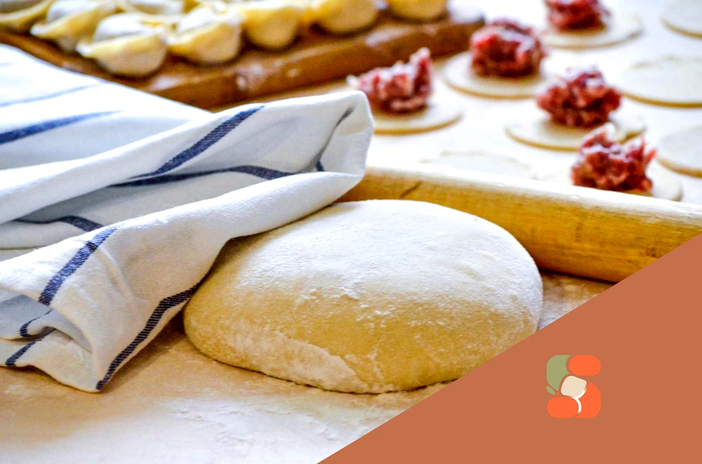 : Тепер тесту треба дати відпочити Припиліть його мукою, накрийте рушником і залиште на півгодини. Це робиться для того, щоб клейковина, що міститься в борошні, змішалася з водою. Тоді тісто стане пружнішим і з ним буде легко працювати.