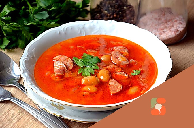 Томатний суп з мисливськими ковбасками та квасолею
