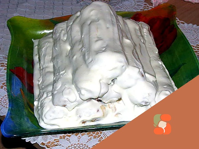 Чарівний десерт, що справді нагадує заснічені дровяники! Шоколадний бісквіт з ніжною вершковою начинкою прихований під білосніжною глазур'ю, а тонкі шоколадні стружки на поверхні додають йому реаліст…