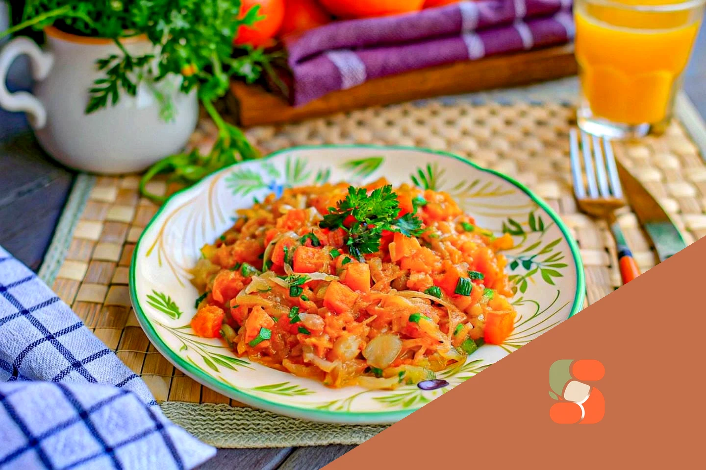 Як подати та зберігати тушковану капусту з гарбузом та морквою? Коли бульйон практично випарується, зніміть сковороду з вогню, залишки бульйону не зливайте, залиште в сковороді. Тушковану капусту з гарбузом і морквою розкладете по тарілках, трохи полив бульйоном зі сковороди. Посипте блюдо порізаною свіжою зеленню, вона додасть приємного смаку та аромату. Готову страву, що остигнула, зберігайте в герметичному контейнері в холодильнику до 3-4 днів. Приємного апетиту!