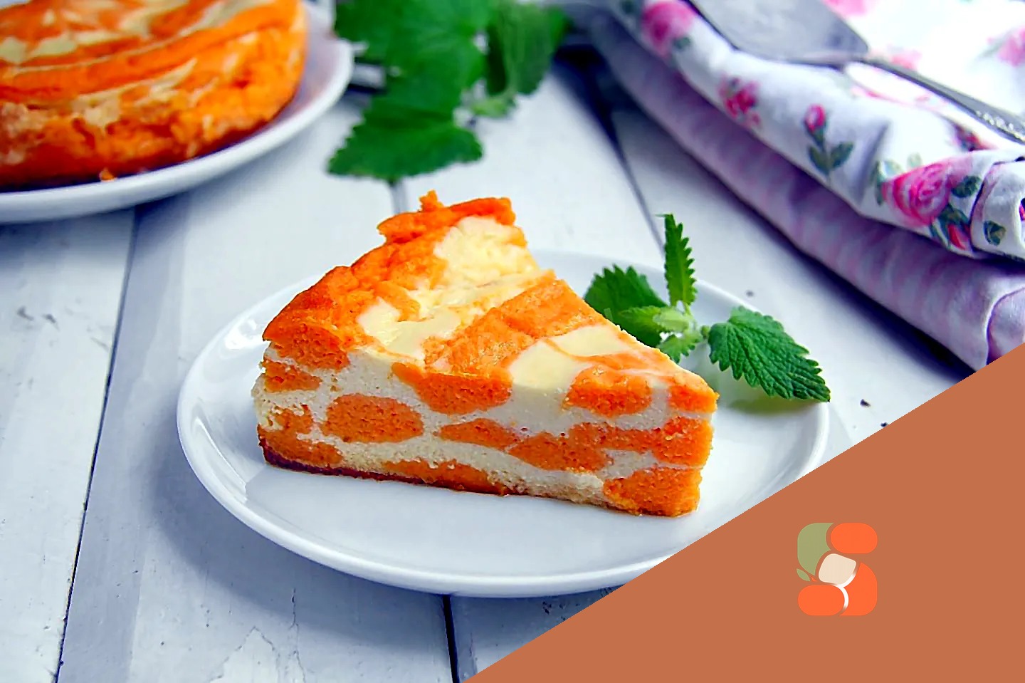 : Перемішайте гарбузово-сирну масу (через додавання пюре вона стане більш рідкою, ніж біла), і додайте в неї стільки борошна, щоб густота білої та помаранчевої сумішей приблизно вирівнялася. Я додала дві столові ложки, але дивіться по консистенції. У білу суміш борошно не додавайте!