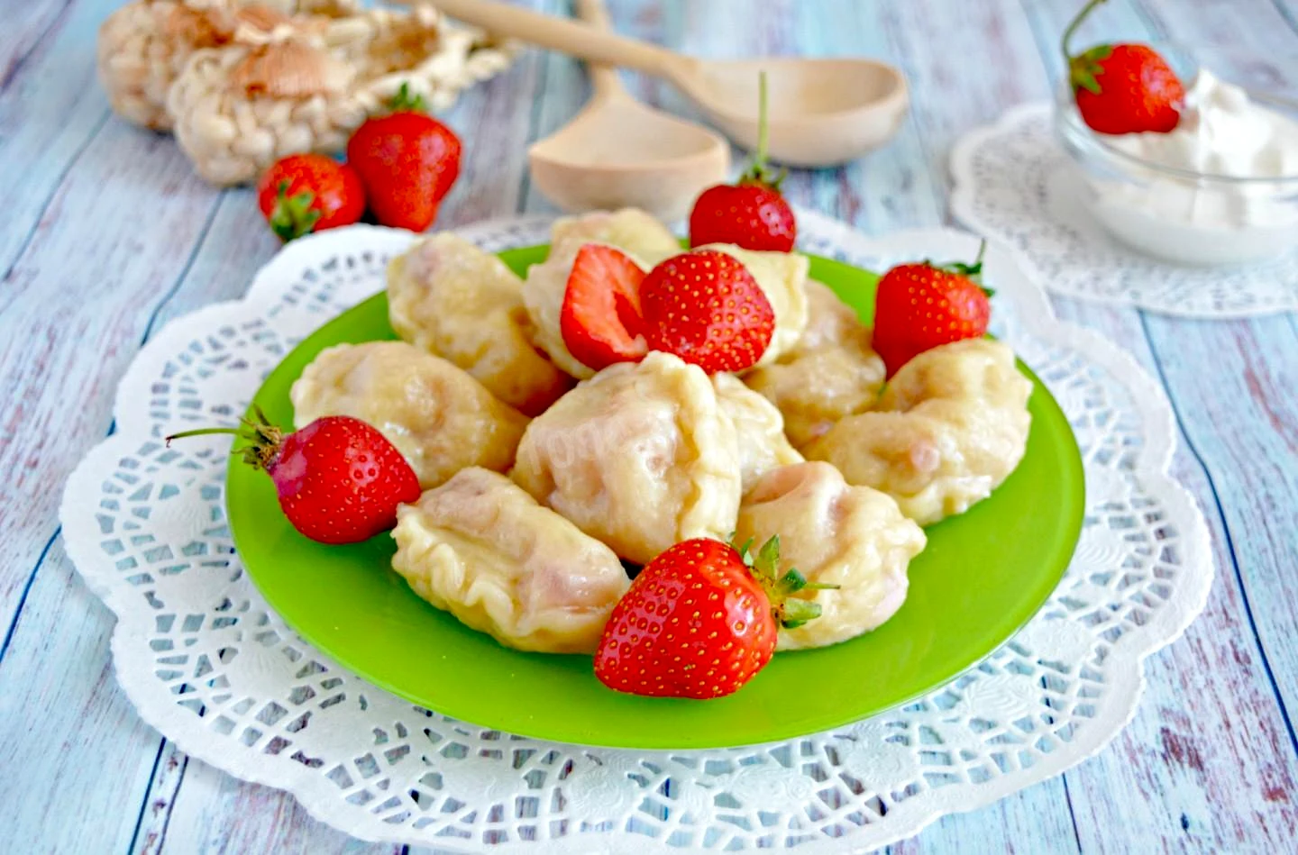 : Як зробити вареники з полуницею? Підготуйте потрібні інгредієнти. Ягоди підійдуть будь-які, але з дрібних ягід зручніше ліпити вареники. Якщо полуниця занадто велика, її можна розрізати на дві-три частини. Борошно обов'язково просійте. Завдяки цьому вона насититься киснем, і готове тісто вийде ніжніше.