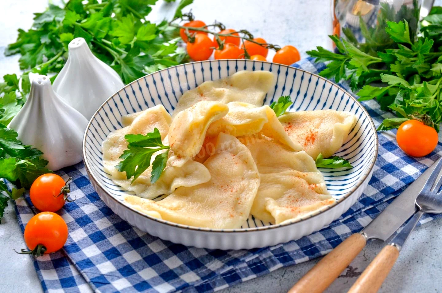: При подачі посипте вареники меленою паприкою Можете також змастити їх вершковим маслом. Приємного апетиту!