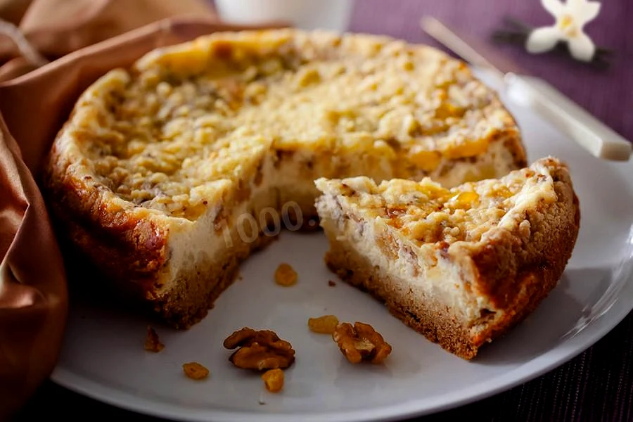 Інгредієнти−8 порцій+Продукти (8 порцій)Пшеничная мука1.5 стак.Сливочное масло210 грСахар0.75 стак.Сода0.5 чайн.л.Сахар1 стак.Творог400 грЯйца4 шт.Ванильный сахар1 чайн.л.Грецкие орехи20 грЦукаты20 грСухофрукты20 гр