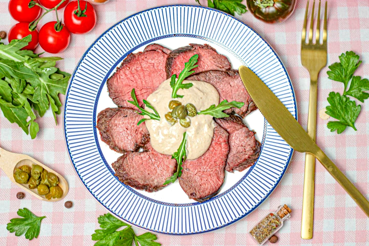 як подати вітелло тонато до столу? Наріжте м'ясо на слайси, що тонше - тим краще. На тарілку викладіть шматочки ростбіфа, а зверху полийте соусом тонато. Прикрасьте страву каперсами та подавайте до столу. Приємного апетиту!