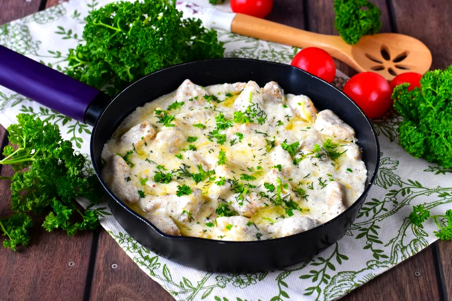 Индейка в сливочном соусе на сковороде