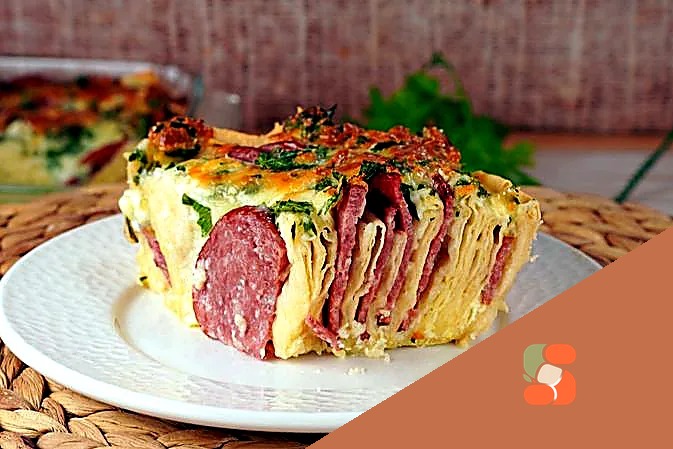 Закусочний пиріг з лаваша з ковбасою та сиром