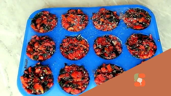 # Заморожені помідори з зеленню на зиму Це чудовий спосіб зберегти літній смак помідорів до холодної пори року! Яскраві, соковиті помідори з ароматною зеленню заморозяться в окремих порціях, готові с…