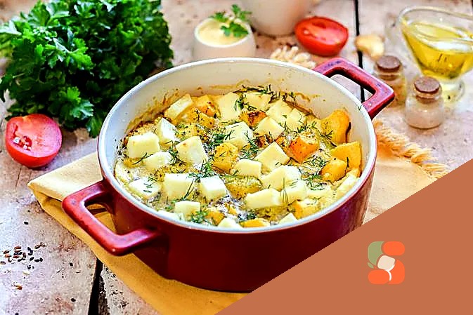 # Запечена гарбуз з яйцами та адигейським сиром Золотава гарбузова мякоть із лискучим розплавленим сиром і аж до хрускавості запечені яйця — це справжній гімн осінніх смаків! Благородна мякість гарбу…