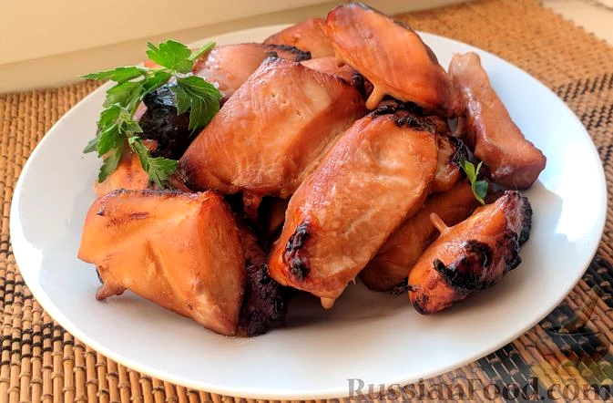 Запечена куряча грудка в маринаді із соєвого соусу та меду готова.