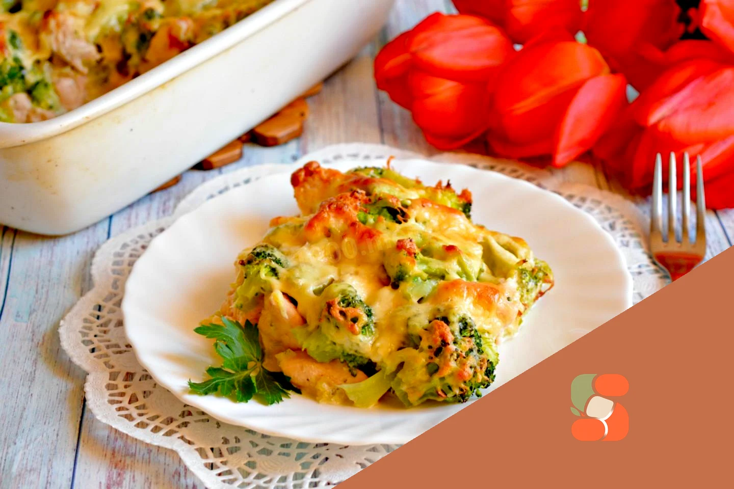 : Поставте брокколі з куркою в заздалегідь розігріту до 180 градусів духовку. Випікайте приблизно 25 хвилин|мінути| до золотистої сирної скоринки. Час випікання може трохи змінюватись, це залежить від вашої духовки. Можна орієнтуватися за кольором сирної скоринки, якщо вона золотиста - страва готова (оскільки ми використовуємо вже готові інгредієнти, сирим і не пропеченим нічого не залишиться). Приємного апетиту!