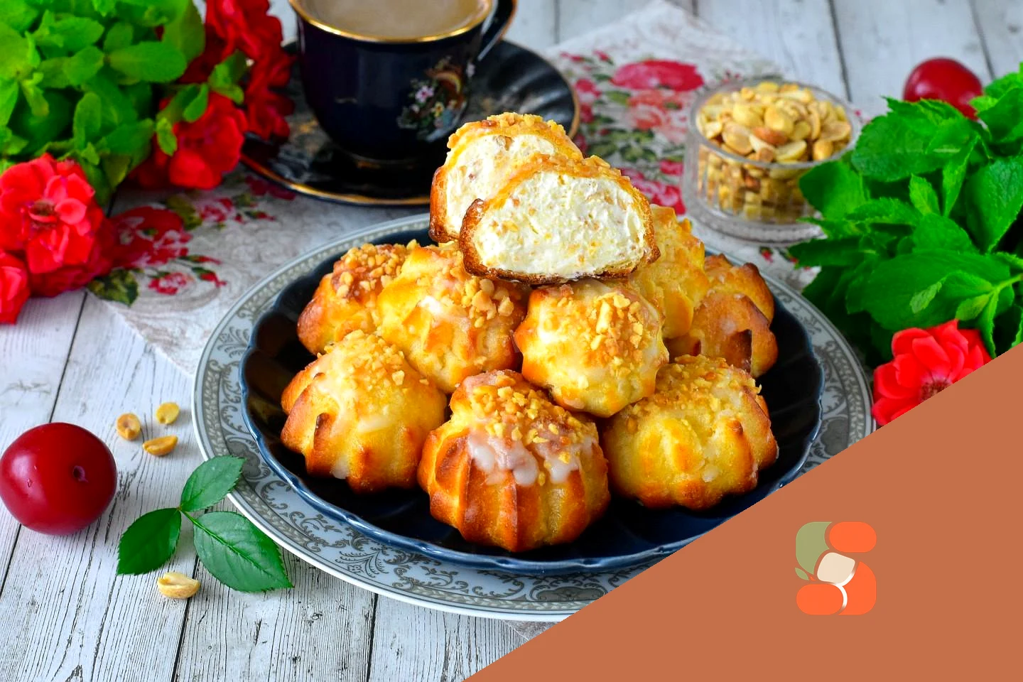 : Верхушки пирожных обмакните в глазурь и посыпьте измельченным арахисом. Дайте глазури застыть.
