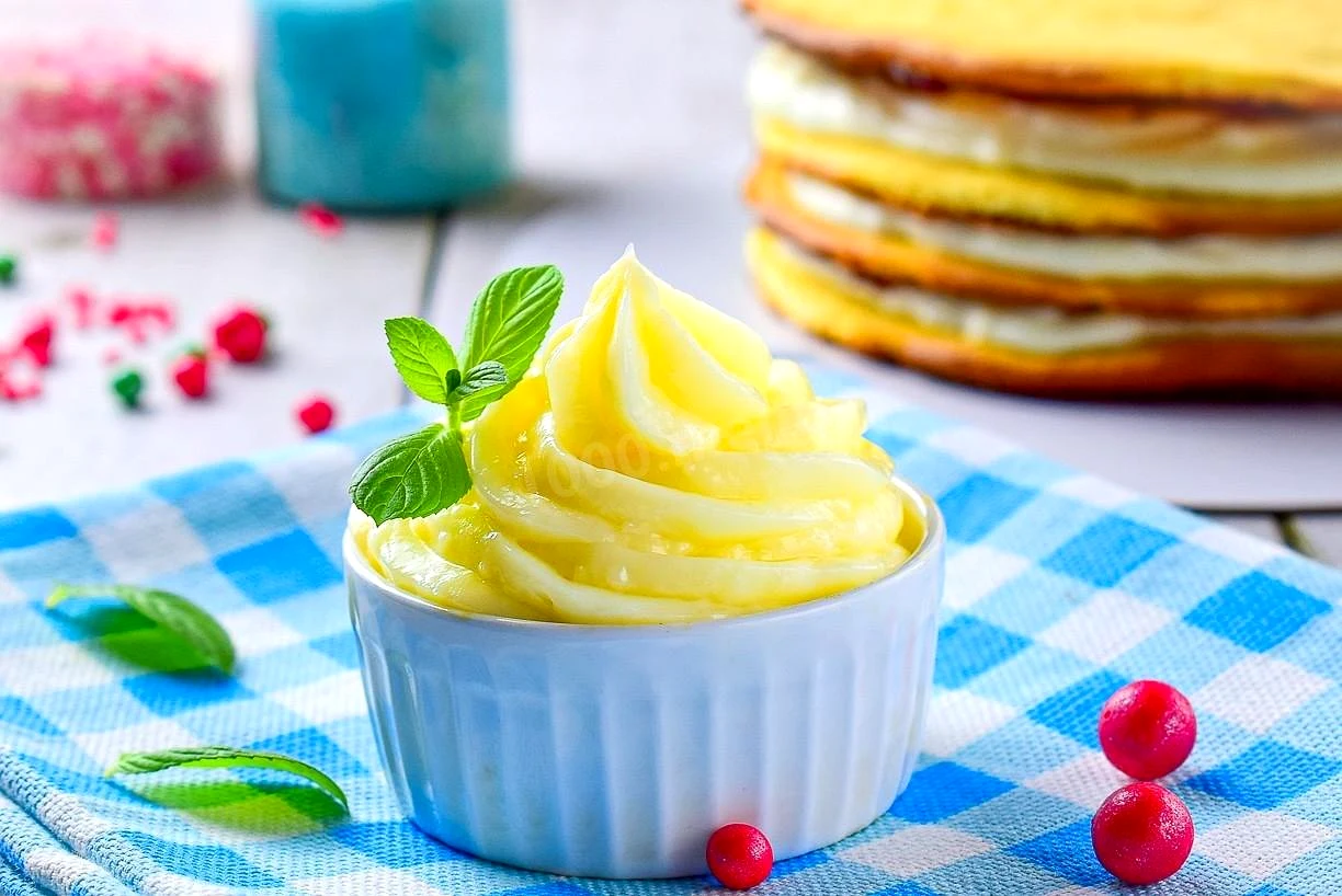 : Найчастіше, цей крем я використовую для складання торта Наполеон У ньому прісні коржі добре доповнюються цим солодким кремом. Якщо використовувати крем для інших цілей, кількість цукру можна трохи зменшити. Використовуйте готовий крем за призначенням!