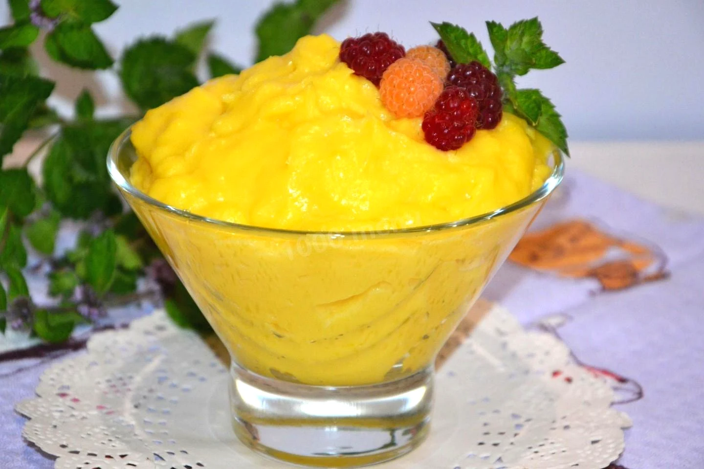 : Ось наш готовий заварний крем без олії Він дуже смачний, ароматний, густий та щільний. Його можна використовувати як начинку в тістечка, промазати ним коржі для торта "Наполеон", а можна просто подати зі свіжими фруктами і ягодами як десерт. Як бачите, готувати цей крем зовсім не складно. З такого набору продуктів виходить приблизно 500 грамів прекрасних ласощів.