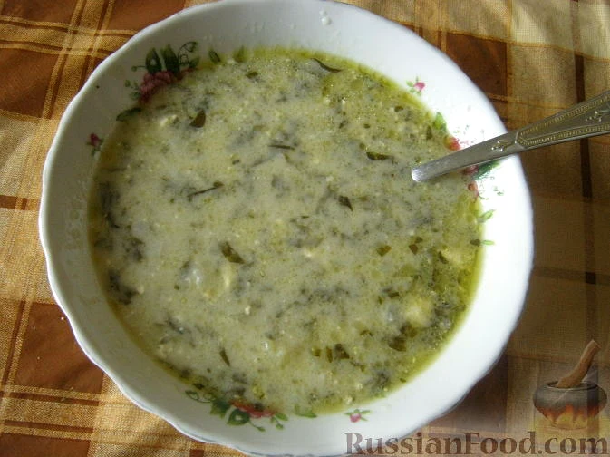 Рецепт Борщ зелений, склад: бульйон яловичий, картопля, рис, яйця, цибуля ріпчаста, щавель, шпинат, зелень петрушки, зелень кропу, цибуля зелена, сметана, сіль;, Рецепти перших страв, борщ, борщ зі щ…