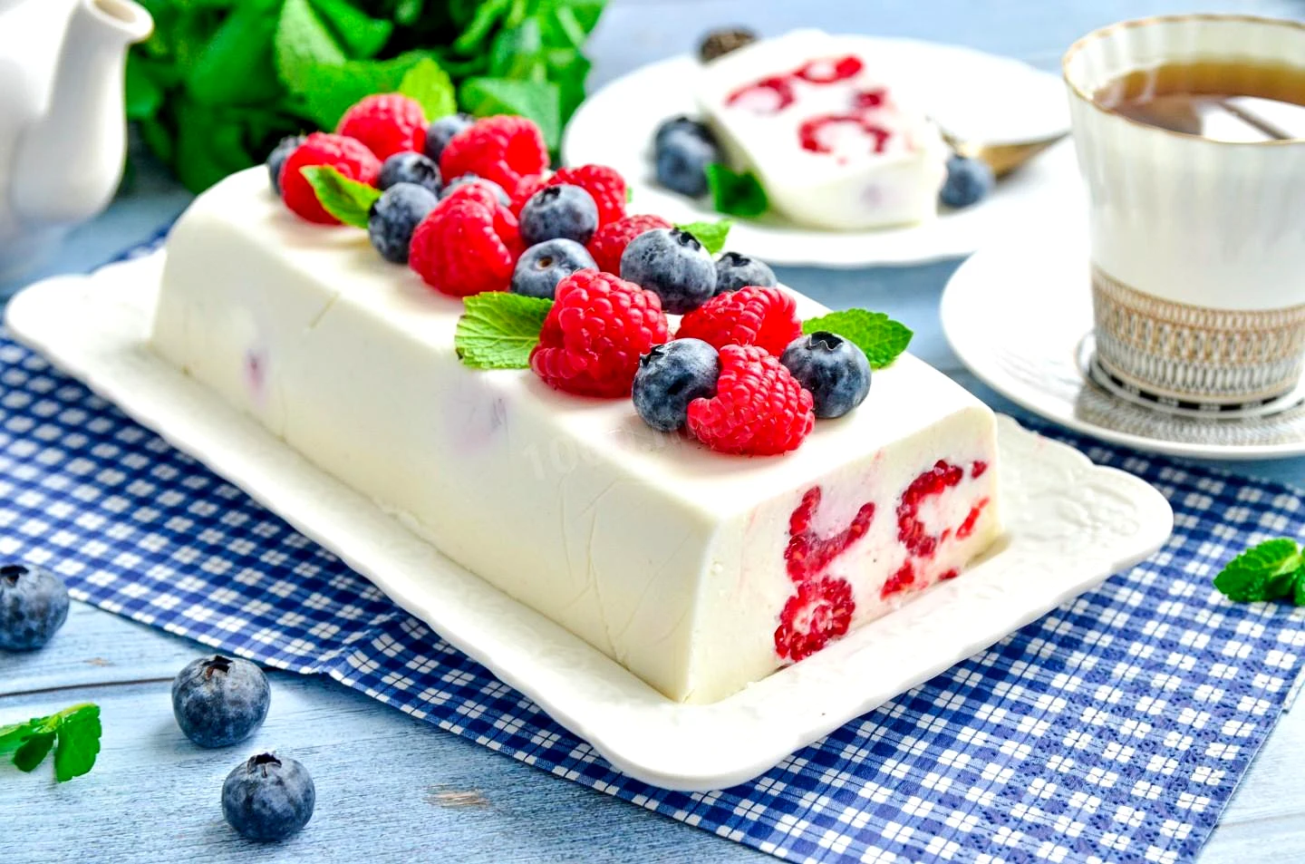 : Вийміть готовий десерт із холодильника, переверніть його на блюдо. Заберіть плівку. Подавайте десерт із свіжими ягодами. Можете також полити його будь-яким сиропом. Приємного апетиту!