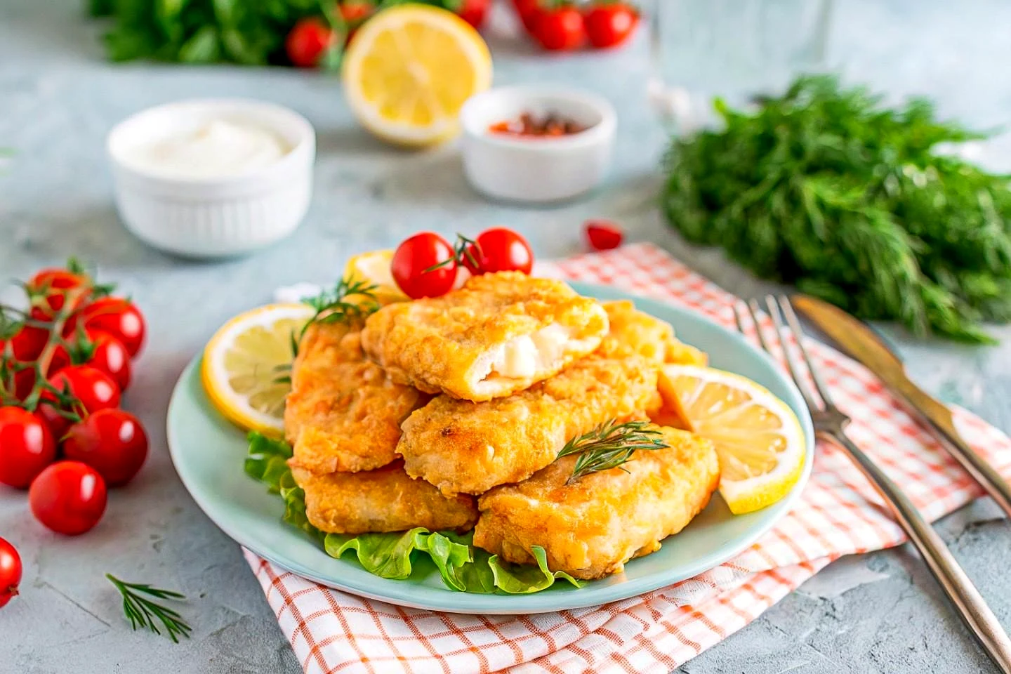 Як подавати смажений минтай в клярі? Готовий смачний смажений минтай в клярі можна подавати як гарячим, так і теплим. На гарнір можна запропонувати картопляне пюре, рис, салати зі свіжих овочів, доповнити свіжою зеленню або соусом за смаком. Приємного апетиту!