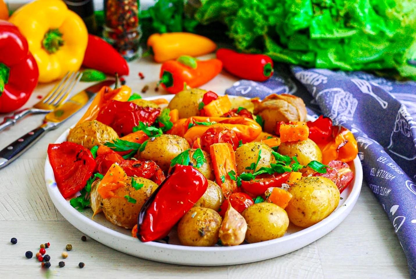 Картопля з овочами в духовці