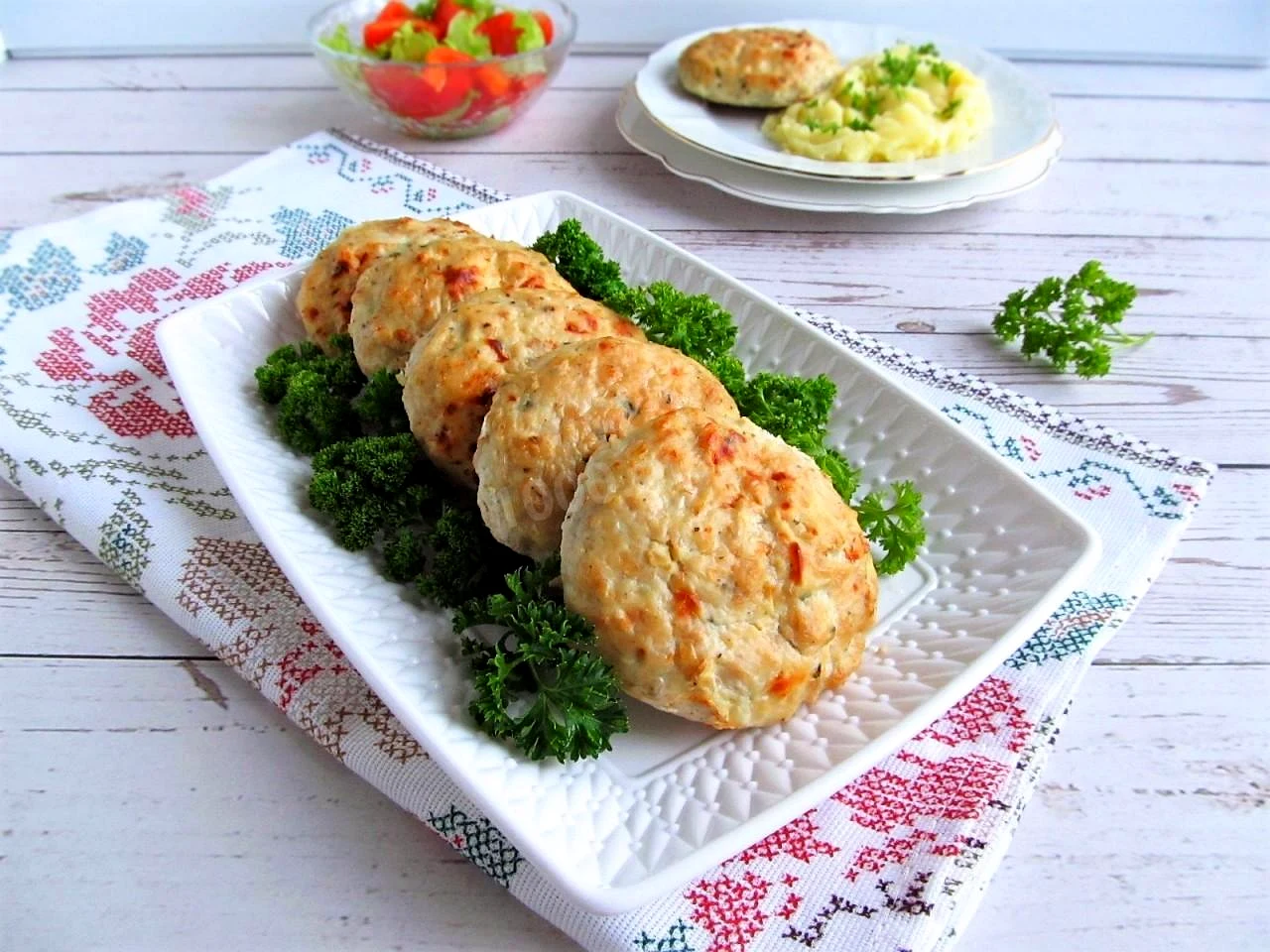 : Запікайте котлети з вівсяними пластівцями в розігрітій до 190 градусів духовці 25-30 хвилин. Подавайте у гарячому вигляді з будь-яким гарніром або свіжими овочами. Приємного апетиту!