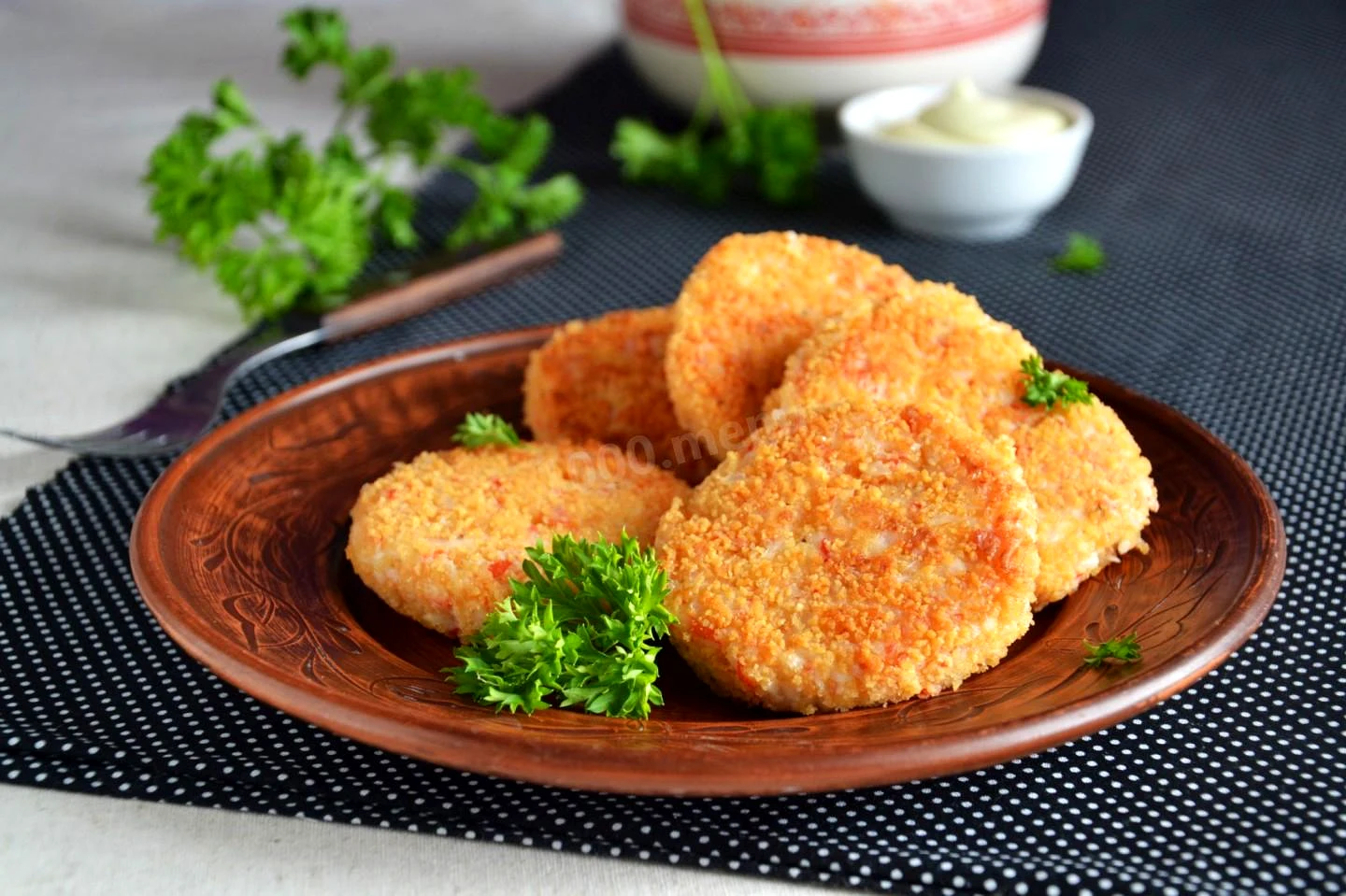 : Подавати котлети з крабових паличок можна зі сметаною Приємного апетиту!