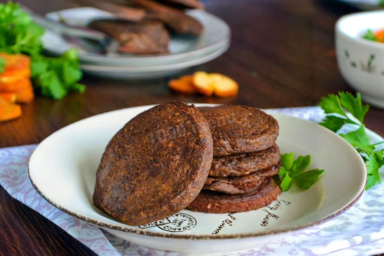 : У сковороду налийте трохи олії з високою температурою димлення. Добре розігрійте. На поверхню сковороди поставте кругле кулінарне кільце діаметром 8-10 см. Налийте в нього небагато (близько 1-2 ст. л.) печінкового тіста. Якщо кільця у вас немає, просто викладіть тісто ложкою у формі оладок. Трохи зачекайте, щоб маса схопилася і заберіть обручку.
