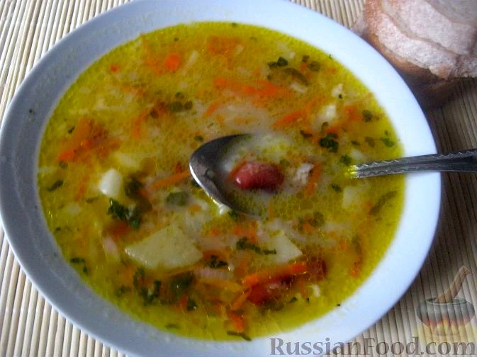 Додати засмажку в суп. Посолити і поперчити до смаку. Варити суп із рисом, квасолею та овочами 5-10 хвилин.