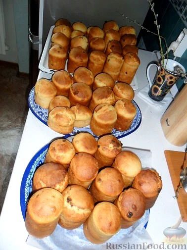 Рецепт Кулич (паска), склад: Для тесту: борошно, молоко, яйця, маргарин м'який, цукор, дріжджі пресовані, сіль, родзинки, ванілін; Для глазурі: яєчний білок, цукор;, Рецепти виробів з тіста, Паски, Т…