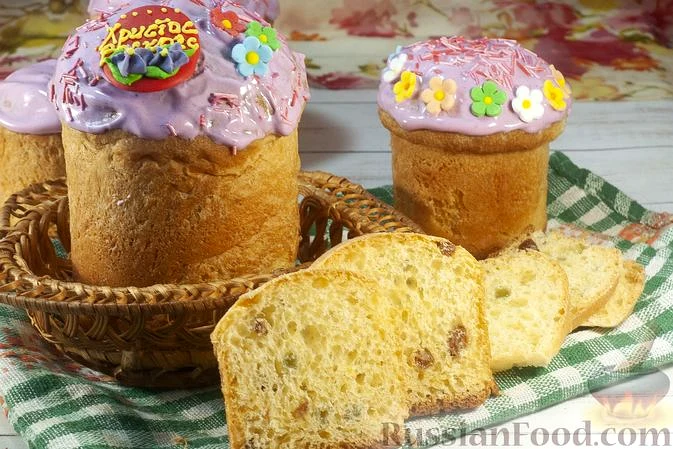 Рецепт Паски на сметані, склад: молоко (тепле), яйця, сметана 20%, масло вершкове (розм'якшене), майонез, олія соняшникова, цукор, борошно (+ у міру потреби), дріжджі сухі, родзинки, цукати, горілка,…