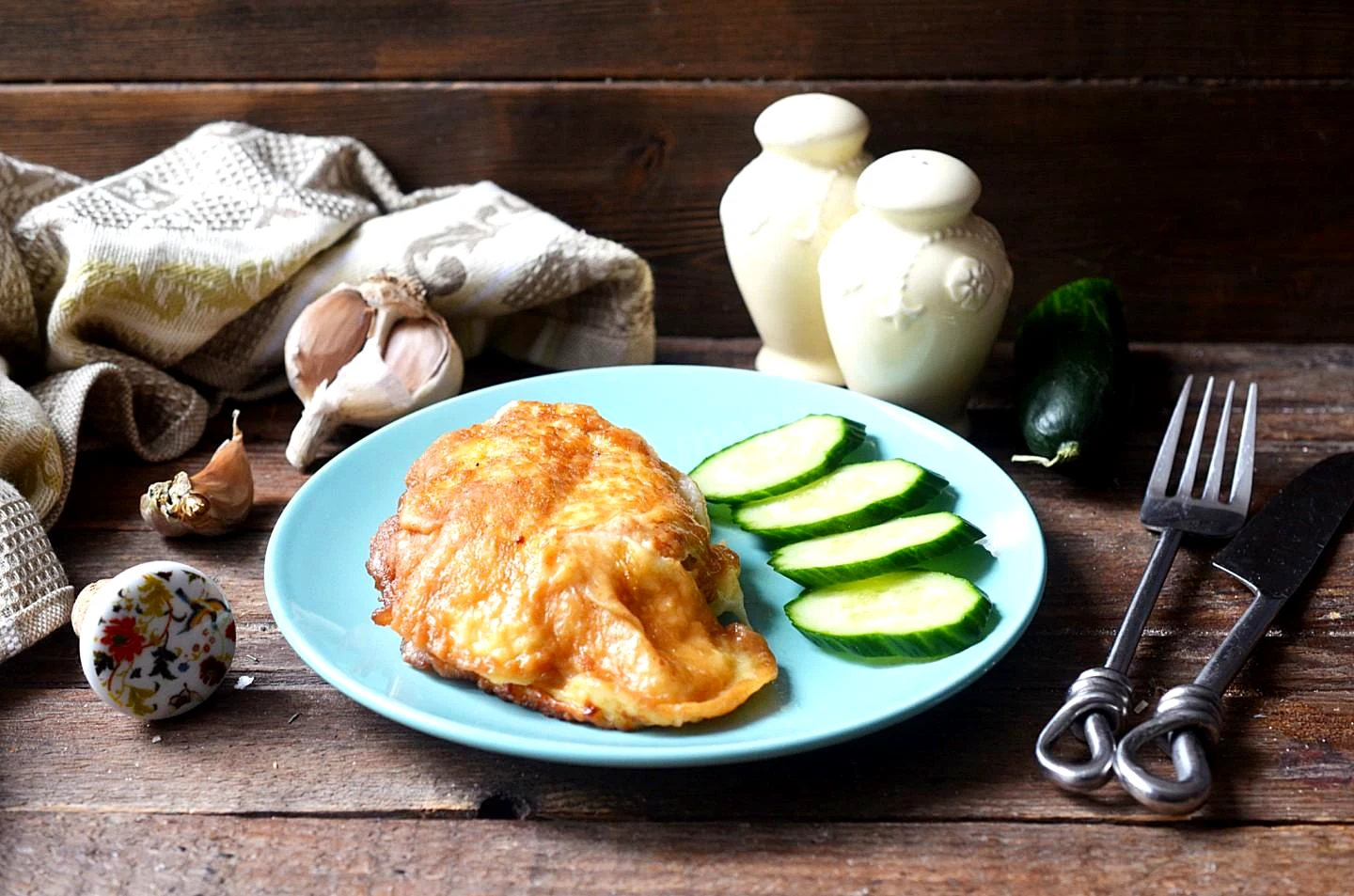 : Акуратно переверніть обсмажену грудку і доведіть до готовності з іншого боку теж десь хвилин за 7. Дивіться на те, яка у вас товщина грудки, тому можна повторити обсмажування ще хвилин по 5 з кожного боку. Кляр виходить дуже хрумкий, а м'ясо ніжне та соковите.