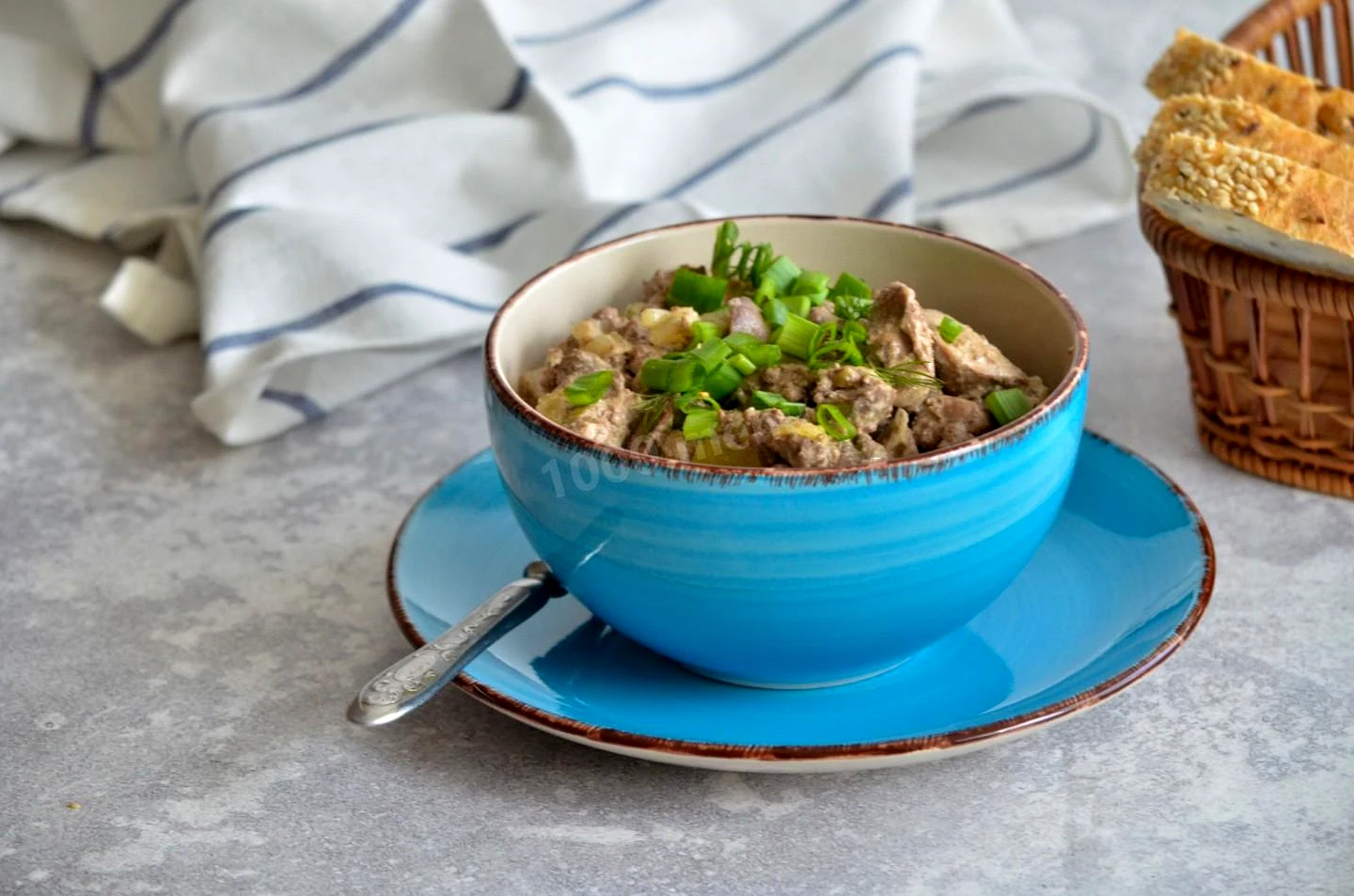 : Додайте|добавляйте| сметану з|із| мукою|борошном| до печінки і добре перемішайте. Прогрітий соус буде густим, у цей час можна додати воду, розбавляючи соус до потрібної консистенції. За потреби додайте сіль. Тушіть печінку в соусі ще 1-2 хвилини і вимкніть вогонь, інакше сметана може згорнутися. Куряча печінка у сметані з цибулею готова. На гарнір відмінно підійде картопляне пюре, рис, гречка чи макарони. Приємного апетиту!