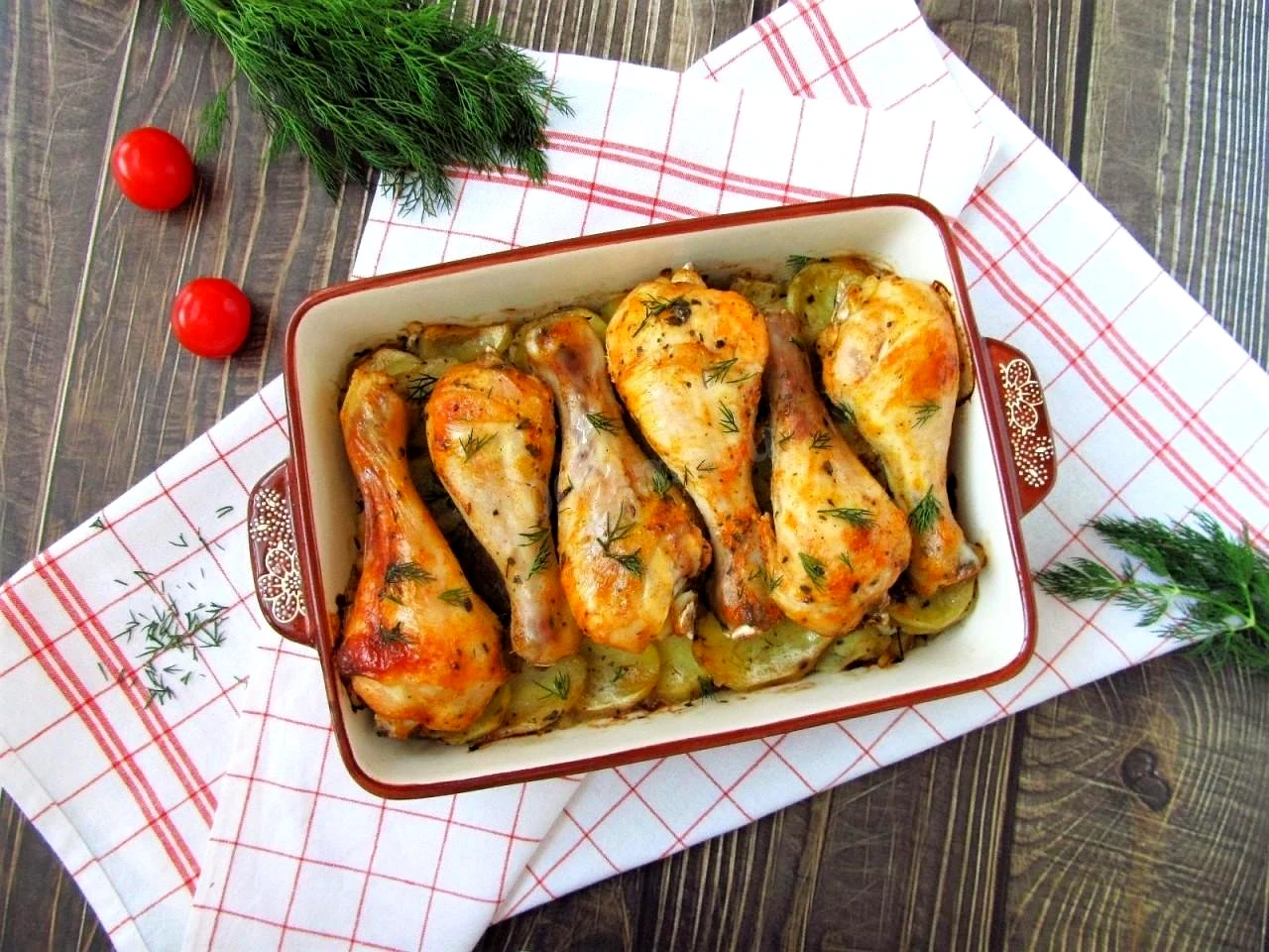 Курячі гомілки з картоплею в духовці