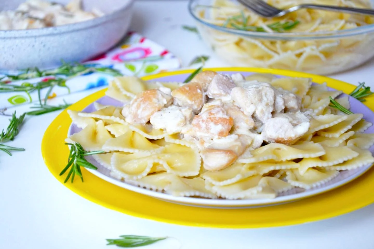 : В кінці смаження можете додати курячі грудки в сметанному соусі голочки свіжого розмарину. Подавайте страву гарячою, само по собі або з будь-яким гарніром. У мене це варені макарони.