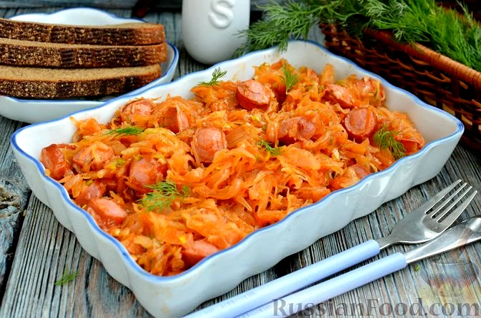 Квашена капуста, тушкована з сосисками